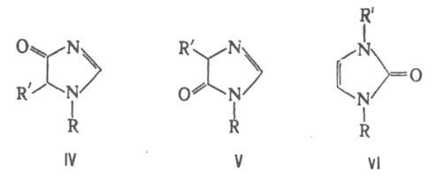 Имидазолиноны обладают слабыми основными и кислыми (при R = Н) св-вами. Для них характерна таутомерия, напр.: