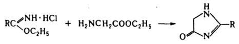 2-Имидазолин-4-оны синтезируют из иминоэфиров, напр.: