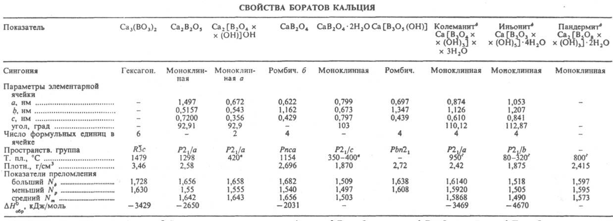 а Существует также др. модификация. б Существуют также еще три модификации. в Т-ра обезвоживания. г Для безводной соли. д Прир. бораты, остальные -синтетические.