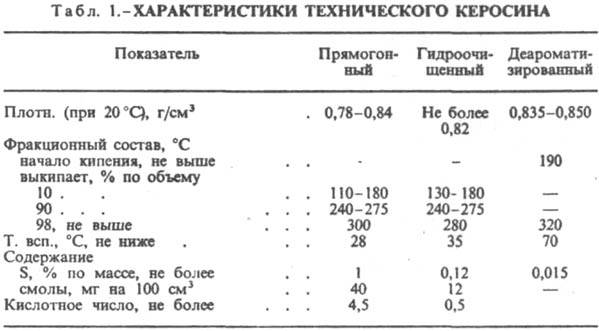 КЕРОСИН (англ, kerosene, от греч. keros - воск), смеси углеводородов, преим. С9-С16 (выкипают в пределах 110-320°С). Содержат примеси сернистых, азотистых или кислородных соединений. Окраска от бесцв. до светло-коричневой с голубым оттенком. В зависимости от хим. состава и способа переработки нефти, из к-рой получен керосин, в его состав входят: предельные алифатич. углеводороды 20-60%, нафтеновые 20-50%, бициклические ароматические 5-25%, непредельные до 2%. Чем выше т-ра конца кипения смесей, тем больше в них бициклич. углеводородов. Основные физ.-хим. св-ва керосина: вязкость 1,2-4,5 мм2/с (при 20 °С), плотн. 0,78-0,85 г/см3 (при 20 °С), т. всп. 28-72 °С, теплота сгорания 42,9-43,1 МДж/кг, КПВ 1,2-8,0% по объему. Пром. произ-во керосина впервые (1823) начато братьями Дубиниными в России на Сев. Кавказе в р-не Моздока (300 т/год; прежнее торговое назв. "фотоген"). Керосин получают (мировое произ-во в 1986 более 100 млн. т) гл. обр. атм. перегонкой нефти, при необходимости с послед, очисткой хим. реагентами, гидрированием или гидроочисткой. Ранее керосин использовали только для осветит. нужд и в медицине. Совр. области применения: реактивное топливо (преим. авиационный керосин); компонент жидкого ракетного топлива (окислитель - жидкий О2 или HNO3); производственно-технические (технический керосин) и бытовые (осветительный керосин). Авиационный керосин, или авиакеросин, служит в двигателях летат. аппаратов не только топливом, но также хладагентом и применяется для смазывания деталей топливных систем. Поэтому он должен обладать хорошими противоизносными (характеризуют уменьшение изнашивания трущихся пов-стей в присут. топлива) и низкотемпературными св-вами, высокой термоокислит. стабильностью и большой уд. теплотой сгорания. Технический керосин (табл. 1) используют как сырье для пиролитич. получения этилена, пропилена и ароматич. углеводородов, в качестве топлива в осн. при обжиге стеклянных и фарфоровых изделий, как р-ритель при промывке механизмов и деталей. Деароматизированный путем глубокого гидрирования керосина (содержит не более 7% ароматич. углеводородов) - р-ритель в произ-ве ПВХ полимеризацией в р-ре. В керосин, используемый в моечных машинах, для предупреждения накопления зарядов статич. электричества добавляют присадки, содержащие соли Mg и Сr.