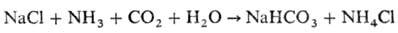 Осн. кол-во натрия карбоната получают аммиачно-хлоридным способом (способ Сольвэ): естественный или искусственно приготовленный рассол NaCl очищают от примесей Са и Mg действием Na2CO3 и Са(ОН)2, насыщают NH3, а затем подвергают карбонизации в барботажных колоннах; осн. р-ция: