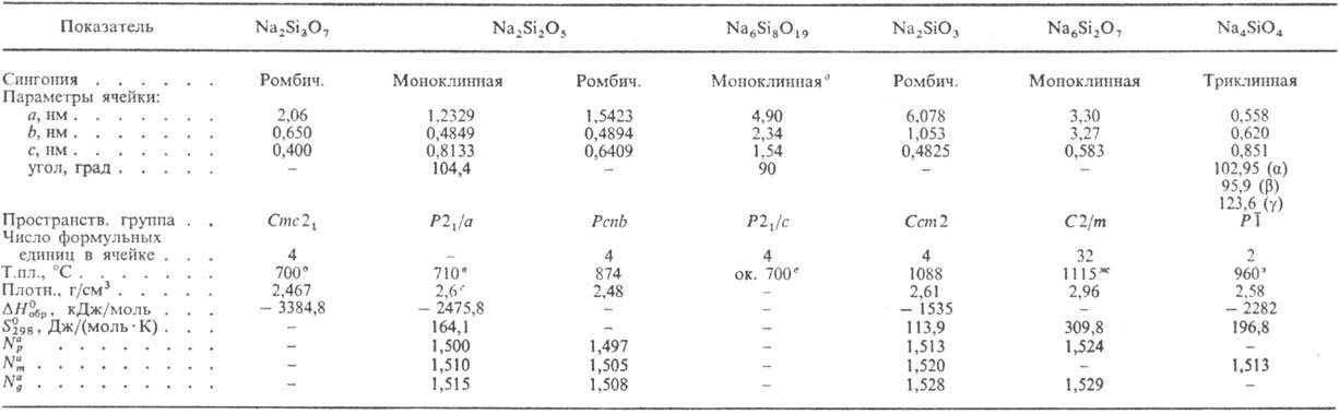 3Na2O•SiO2 + SiO2). вT-pa полиморфного перехода, DH перехода 6,3 кДж/моль. гПлотн. стеклообразного 2,51 г/см3. дИзвестна др. моноклинная форма с т.пл. 808°С (инконгруэнтно). еТ. разл. (Na6Si8O19