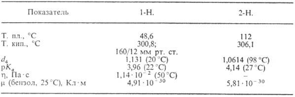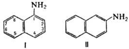 НАФТИЛАМИНЫ, мол. м. 143,18. 1-Нафтиламин (a-нафтиламин, ф-ла I) и 2-нафтиламин (b-нафтиламин, II)-бесцв. кристаллы (см. табл.), темнеющие на воздухе; хорошо раств. в этаноле, диэтиловом эфире, плохо-в воде; возгоняются, перегоняются с водяным паром.