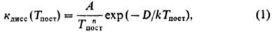 гдe кАВдисс(Тпост)-значение кАВдисс при Ткол = Тпост. Распределение (2) переходит в ф-лу Больцмана при Ткол = Тпост.