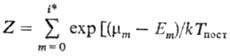 где k-постоянная Больцмана, gi, gl-числа возможных квантовых состояний молекулы на уровнях с энергиями Еi и Еl соотв. (суммирование проводится по индексу l). Если оператор энергии (гамильтониан) системы допускает разделение переменных, то энергию Еi можно выразить в виде суммы энергий независимых или слабо связанных подсистем. В газах Еi можно представить в виде суммы энергий поступат. и вращат. движений молекул, внутримол. колебаний и электронного возбуждения, причем каждый вид энергии описывается своей ф-цией распределения типа ф-лы Больцмана.