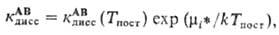 Вычисление констант скорости хим. р-ций упрощается, если в неравновесной в целом системе можно выделить равновесные подсистемы. Константы скорости р-ций в таких случаях выражаются как ф-ции т-р подсистем. Напр., константа скорости диссоциации кABдисс двухатомного газа АВ при высоких Tпост приближенно представляется в виде ф-лы типа (1), но в экспоненциальный множитель вместо Тпост входит Ткол, а предэкспоненциальный множитель слабо зависит от т-ры. Т. к. движение атомов в молекуле носит в осн. колебат. характер, а кинетика многих хим. превращений связана именно с внутримол. перемещениями атомов, т-ра Ткол- важнейшая кинетич. и энергетич. характеристика состояния газа в условиях, описываемых неравновесной химической кинетикой. Для молекул, состоящих из неск. атомов, константа скорости мономол. распада м. б. при низких давлениях экспоненц. ф-цией Тпост и Tкол, общей для всех колебаний (иногда отдельно рассматриваются Ткол для низко- и высокочастотных колебаний).