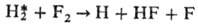 HF* + Н с почти резонансной быстрой передачей этого возбуждения на молекулу Н2 и послед. прямой р-цией: