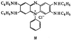 Наряду с этими красителями в нигрозинах содержится большое кол-во тетрафениламинопроизводного N-фенилфеназония (IV), одного из компонентов индулинов.