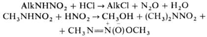 С основаниями они образуют достаточно стабильные соли, к-рые при осторожном подкислении переходят в исходные нитрамины. Алкилирование первичных нитраминов или их солей алкилгало-генидами, диэтилсульфатом или диазоалканами приводит к N- и О-производным, напр.: