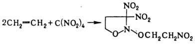 При нитровании олефинов тетранитрометаном в зависимости от строения олефина образуются либо алифатич. полинитро-соед., либо производные изоксазолидина, напр.: