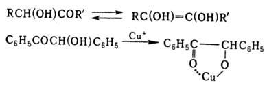 1,2-Гидроксикетоны (ацилоины) способны к кетоеноль-ной таутомерии и образованию хелатных соед.: