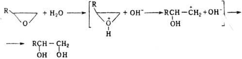 При этом направление атаки зависит от кислотности среды. Так, для алкилзамещенных олефинов оксидов в кислой среде атака идет по наиб. замещенному атому С, в основной или нейтральной - по наим. замещенному. Стереоселективность раскрытия цикла зависит также от стерич. факторов и полярности р-рителя.