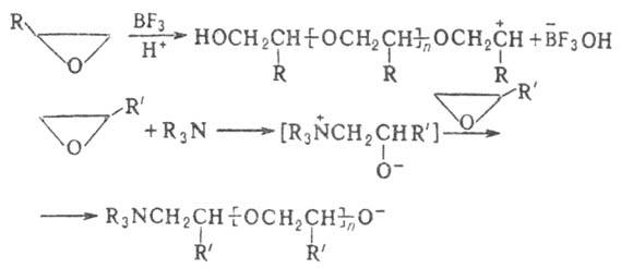 Олефинов оксиды при нагр. в присут. катализаторов катионной и анионной полимеризации (напр., металлоорг. соед., щелочей, аминов, к-т Льюиса и т.д.) превращаются в простые полиэфиры (см. также Полиэтиленоксид), напр.: