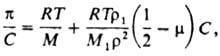 = RT/A1 + A2C + + А3С2 + ...), где А, величины, связанные с вириальными коэф., учитывающими двойные, тройные и др. взаимод. молекул;