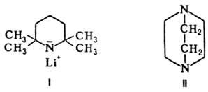 Основания органические иногда используют для активации металлоорг. соединений. Напр., активность бутиллития значительно повышается в присут. 1,4-диазабицикло[2.2.2]октана (ДАБЦО; II) или тетраметилэтилендиамина (ТМЭДА), что объясняется координацией N-атомов этих соед. с ионом лития, к-рый таким образом отделяется от карбаниона и не так сильно нейтрализует его отрицат. заряд.