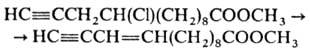 Для дегидрогалогенирования соед., содержащих чувствительные к щелочам и др. сильным основаниям группировки, применяют ДБН, к-рый, напр., превращает хлорацетилены, содержащие сложноэфирную группировку, в сопряженные енины:
