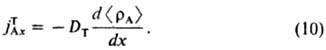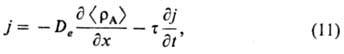 где Dе-коэф. эффективной диффузии (при рассмотрении молекулярных переноса процессов Dе следует заменить на коэф. D); т-время релаксации диффузионного процесса, характеризующее "память среды"; t- время. По порядку величины т совпадает со временем своб. пробега диффундирующих частиц. Аналогичные ур-ния м. б. записаны для плотности потока импульса и теплоты.