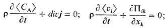 При ламинарном режиме течения: C'A = v' = T' = 0 и в приведенных выше ур-ниях осредненные по времени значения переменных приобретают смысл мгновенных величин; поэтому в ур-ниях (1)-(3) следует принять
