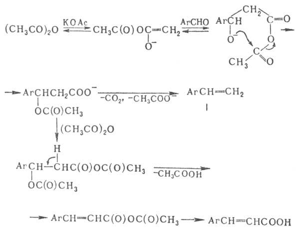 Для синтеза a-арилкоричных к-т используют также уксусный ангидрид и соль щелочного металла соответствующей карбоновой к-ты (модификация Ольялоrо):