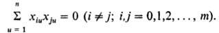 3)сумма почленных произведений любых столбцов двух любых факторов равна нулю: