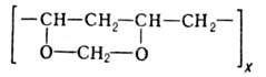 ПОЛИВИНИЛФОРМАЛЬ (формвар, формадур, мовиталь F, пиолоформ F, ревиль F, ровиналь F и др.), степень полимеризации 350-500; в техническом поливинилформале содержится 68-72% винилформальных звеньев (винилспиртовые и ви-нилацетатные в ф-ле не приведены; см. Поливинилацетали). Аморфный бесцв. полимер; плотн. 1,24 г/см3; т. стекл. 85-950C; т-ра текучести 150-1700C; раств. в уксусной к-те, крезоле, диоксане, дихлорэтане, фурфуроле, нитробензоле, пиридине, смеси (40:60) этанола с толуолом и др., не раств. в спиртах, алифатич. эфирах и углеводородах;