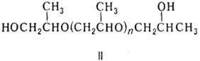 В присут. разл. катализаторов (щелочи, к-ты Льюиса, металлоорг. соед., амины, спирты, фенолы) пропиленоксид легко поли-меризуется в полипропиленоксид [—ОСН2СН(СН3)—]n с мол. массой до неск. миллионов. Полимеризация пропиленоксида в массе в присут. пропиленгликоля при 100-160°С приводит к поли-пропиленгликолю (ф-ла II); в присут. глицерина, пента-эритрита или сорбита-к полиоксипропиленполиолам, напр. соед. III в случае глицерина.