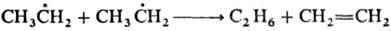 При взаимод. двух радикалов возможно также диспропор-ционирование- перенос атома Н (реже-атома галогена) от одного радикала к другому, напр.: