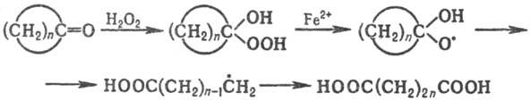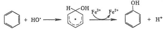 Гидроксильные радикалы, к-рые генерируются реактивом Фентона (Н2О2+Fe2+), способны атаковать неактивир. ароматич. ядро. При этом образуется радикал, к-рый диме-ризуется или в присут. Fe3+ превращ. в фенол: