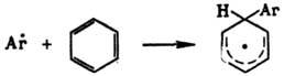 Р-ции радикального замещения в ароматич. ядре обычно не являются цепными и осуществляются через стадию образования циклогексадиенильных радикалов: