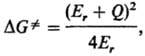 где Q-разность своб. энергий системы продуктов и системы реагентов, т.е. разность между :положениями минимумов соответствующих параболоидов на энергетич. шкале (для экзотермич. р-ций Q < О), а Еr-т. наз. энергия реорганизации р-рителя. Этот важный параметр теории характеризует степень изменения ПСЭ при изменении распределения заряда на субстрате от rа(r) до rb(r). Скорость изменения поляризации среды, подстраивающейся под зарядовое распределение субстрата, к-рое меняется в ходе р-ции, определяется диэлектрич. релаксацией р-рителя. Время продольной диэлектрич. релаксации тL является динамич. характеристикой среды, оно м. б. определено экспериментально на основе ф-лы Дебая (см. Диэлектрики).