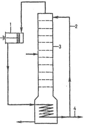 Рис. 10. Установка с тепловым насосом: 1-колонна; 2-компрессор; 3— флегма; 4-дистиллят.