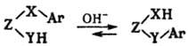 Х-обычно S, SO, SO2, О; YH = ОН, NH2, NHR, SH; Z-цепочка, состоящая, как правило, из 2-3 атомов С. Р-цию осуществляют при нагр. (50-100°С) ароматич. соед. в р-ре щелочи (р-рители- вода, вода-этанол, вода-ацетон, вода - диоксан) от неск. минут до неск. часов. Известны примеры фотохим. Смайлса перегруппировки. Направление перегруппировки в осн. определяется относит. нуклеофильностью X и У.