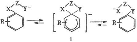 При наличии достаточного кол-ва электроноакцепторных групп (напр., NO2) в орто- и пара-положениях мигрирующего арила (они ускоряют Смайлса перегруппировку) промежут. анионные спи-рокомплексы. Майзенхаймера (I) довольно устойчивы.