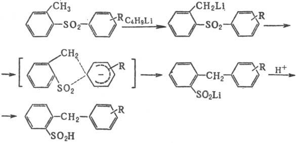 Частный случай Смайлса перегруппировки-перегруппировка Трюса (открыта В. Трюсом в 1958) о-толиларилсульфонов под действием литийорг. соединений в о-бензилсульфиновые к-ты: