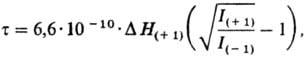При использовании спектроскопии ЭПР в трехсантиметровом диапазоне длин волн можно определять времена релаксации от 5·10 -11 до 10-7 с. Этот интервал подразделяют на области "быстрых" (5·10-11 — 3·10-9с) и "медленных" (10 -9 — 10 -7 с) вращении. Формы спектров и способы их обработки в разных областях различны. Для расчета т (в с) в области "быстрых" вращений обычно используют соотношение: