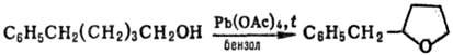 При окислении спиртов, содержащих d-H-атом, происходит циклизация с образованием производных фурана, напр.:
