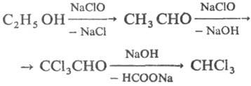 При взаимод. С2Н5ОН с гипогалогенитами Na образуются соотв. хлороформ, бромоформ и йодоформ (т. наз. галоформная р-ция):
