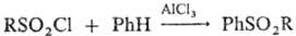 Диарил- и алкиларилсульфоны получают взаимод. сульфонилгалогенидов с ароматич. соединениями в условиях р-ции Фриделя - Крафтса: