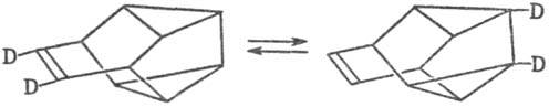 Др. вид таутомерных превращений, протекающих без миграции атома или группы атомов,-валентная таутомерия-обратимое взаимопревращение валентных изомеров. Последние представляют собой изомеры, к-рые можно перевести друг в друга в результате перераспределения связей (см. Изомерия). К валентной таутомерии можно отнести нек-рые сигматропные перегруппировки (11),. электроциклические реакции (12), кольчато-кольчатые перегруппировки (13).