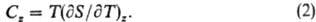 Из второго начала термодинамики следует, что теплоемкость пропорциональна производной от энтропии системы S по т-ре Т при постоянстве внеш. силы или термодинамич. координаты (обозначается индексом z):