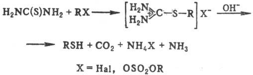С солями ряда металлов (Сr, Zn, Cd, Hg, Pb, Ni, Со) дает комплексные соединения. Легко реагирует с алкилгалогени-дами, диалкилсульфатами и др. алкилирующими агентами с образованием S-алкилпроизводных изотиомочевины (S-алкилизотиурониевых солей). Последние малоустойчивы и при попытке выделения распадаются до тиолов: