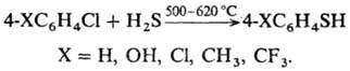 Разработан способ получения тиофенолов р-цией хлораренов с H2S или алкантиолами в газовой фазе: