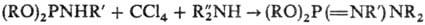 В условиях Тодда - Атертона реакции нек-рые производные тиокислот фосфора типа Х2Р(S) H образуют соответствующие тиофос-форильные соед.; моноорганоамиды диалкилфосфористых к-т и вторичные амины образуют фосфазосоединения: