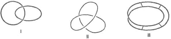 Закономерности геометрической, или структурной, топологии применяют к анализу мол. полиэдров (полиэдрических соединений)-молекул, имеющих форму тетраэдра, куба, додекаэдра и т. д. Важными достижениями явились синтезы орг. молекул, имеющих форму фрагментов винтовой пов-сти (гелицены), замкнутых сфероидальных многогранников углерода С60 и С70 (фуллерены),. а также соед., обладающих т. наз. топологич. связью, т.е. мех. связью между двумя фрагментами молекулы, как, напр., в катена-нах-двух моноциклич. молекулах, продетых одна сквозь другую (ф-ла I). Имеющаяся в них топологич. связь определяется не хим. взаимодействием, а специфич. расположением ее компонентов. Критическим является достаточно большой размер цикла, не менее 26 атомов С. Катенан-то-пологич. изомер двух моноциклов. Аналогично моноцикл еще большего размера (ок. 60 атомов и выше) имеет топологич. изомер-трилистный узел (II). Нижний предел в числе атомов для существования топологич. изомеров обусловлен стерич. препятствиями, возникающими вследствие реальных размеров атомов, в отличие от идеальных геом. точек и линий. Это же отличие вызывает существование ротаксанов- молекул, в к-рых топологич. связь появляется благодаря пространств. препятствиям, мешающим конечным группам большого размера на концах линейной молекулы пройти через цикл достаточно малого размера.
