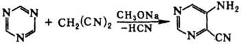 С соед., имеющими активированную группу СН2, 1,3,5-триазин реагирует с образованием замещенных пиримидина:
