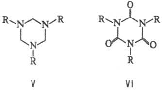 Производные гексагидро-1,3,5-триазина - антисептики (напр., V; R = Alk, гидроксиалкил), бактерициды, отбеливатели; 1,3,5-тринитро-1,3,5-триазациклогексан (V; R = NO2), или гексоген,- бризантное ВВ. Аллилцианурат (V; R = = ОСН2СН=СН2) и аллилизоцианурат (VI; R = = СН2СН=СН2)-модификаторы в произ-ве меламино-формальдегидных смол. Мн. кетопроизводные 1,3,5-триазина-физиологически активные в-ва; напр., рибофуранозид 4-амино-1,3,5-триазин-2-она (5-азацитидин) проявляет противоопухолевую и противолейкемич. активность; 6-диметиламино-1 -метил-3-циклогексил-1,3,5-триазин-2,4-дион (гексазинон) -гербицид.