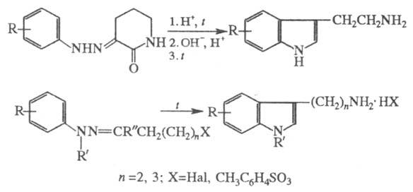 Частные примеры Фишера реакции- синтез триптаминов и гомотриптаминов: