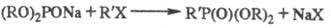При алкилировании и арилировании средних эфиров к-т трехвалентного P образуется новая связь C-P (р-ция Арбузова). Аналогично осуществляется р-ция с использованием металлич. солей гидрофосфорильных соед. (Михаэлиса - Бек-кера реакция):