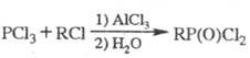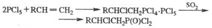 Этот синтез целесообразно проводить в условиях межфазного катализа. Галогенангидриды орг. к-т фосфора образуются при присоединении PCl5 и родственных в-в к непредельным соед.: