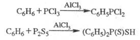 Ароматич. соед. легко фосфорилируются PCl3, P2S5 и др. электрофилами в условиях р-ции Фриделя - Крафтса: